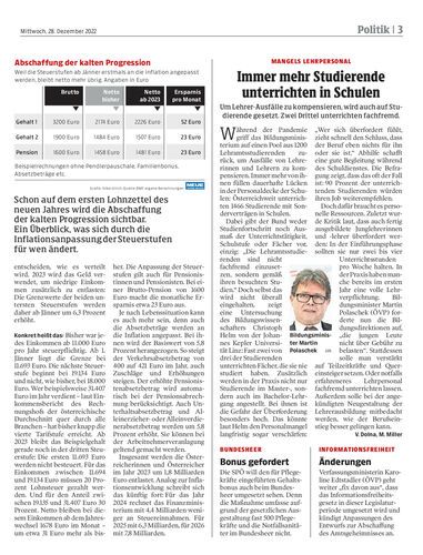 Schon auf dem ersten Lohnzettel des neuen Jahres wird die Abschaffung der kalten Progression sichtbar. Ein Überblick, was sich durch die Inflationsanpassung der Steuerstufen für wen ändert.