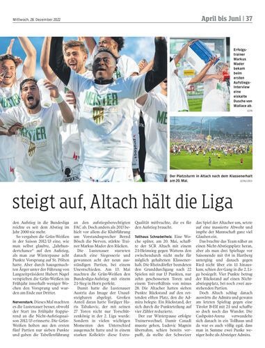 Austria Lustenau gelingt am 13. Mai nach 22 Jahren wieder der Aufstieg in die Bundesliga. Sieben Tage später schafft Altach den Klassenerhalt.