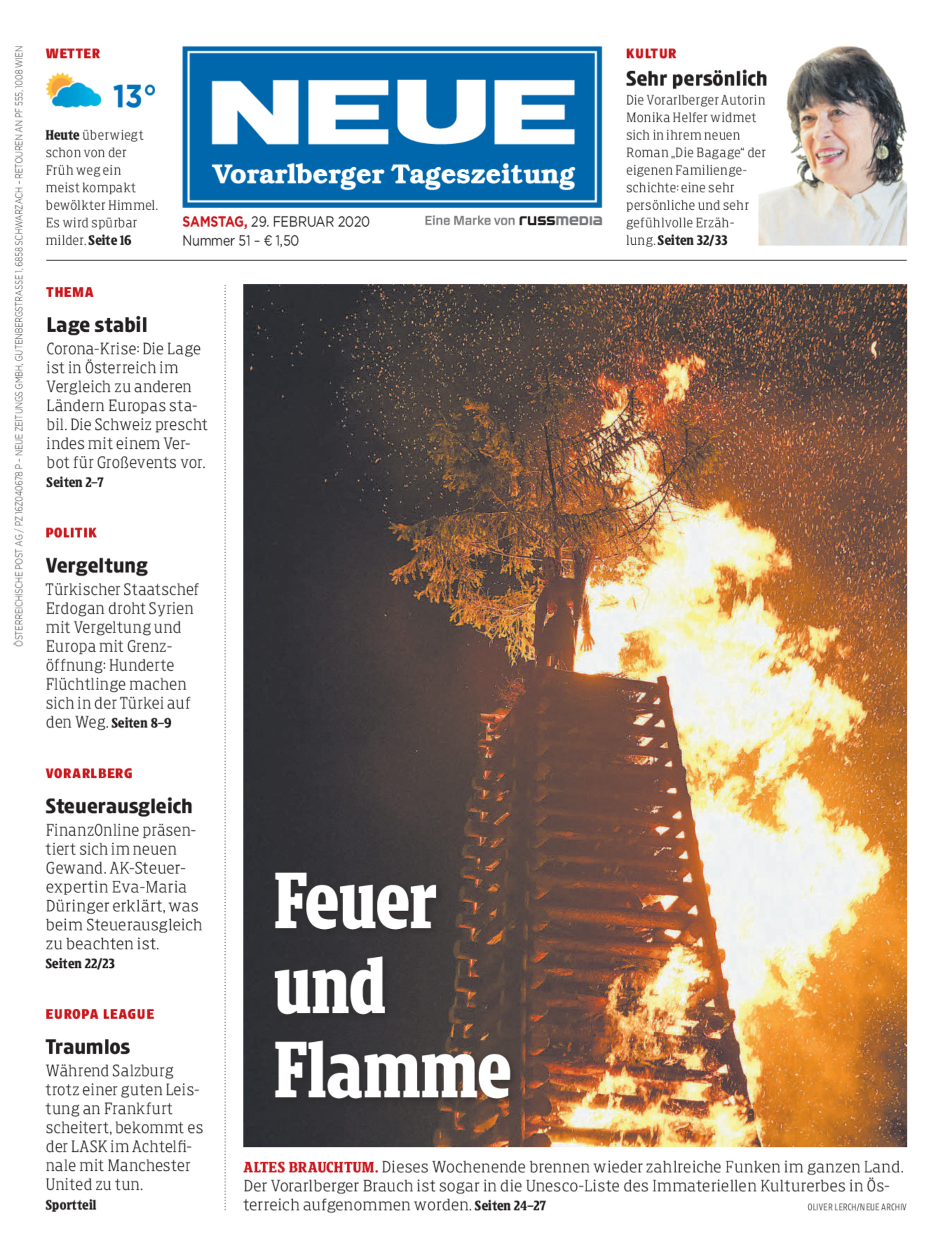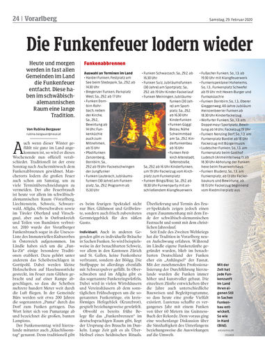 Altes Brauchtum. Dieses Wochenende brennen wieder zahlreiche Funken im ganzen Land. Der Vorarlberger Brauch ist sogar in die Unesco-Liste des Immateriellen Kulturerbes in Österreich aufgenommen worden. Seiten 24–27 Oliver Lerch/NEUE Archiv