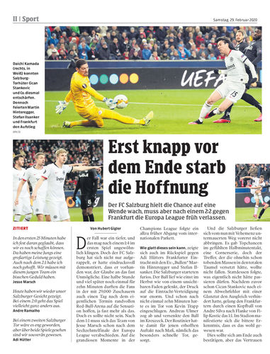 Der FC Salzburg hielt die Chance auf eine Wende wach, muss aber nach einem 2:2 gegen Frankfurt die Europa League früh verlassen.