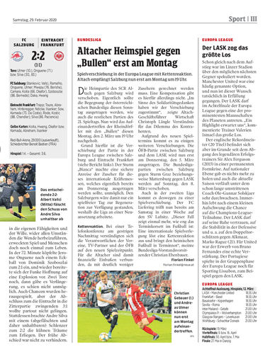 Spielverschiebung in der Europa League mit Kettenreaktion. Altach empfängt Salzburg nun erst am Montag um 19 Uhr.