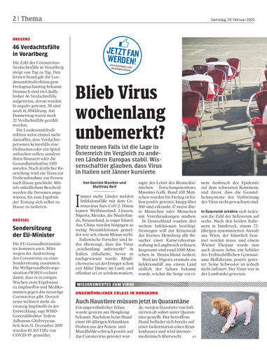 Trotz neuen Falls ist die Lage in Österreich im Vergleich zu anderen Ländern Europas stabil. Wissenschaftler glauben, dass Virus in Italien seit Jänner kursierte.