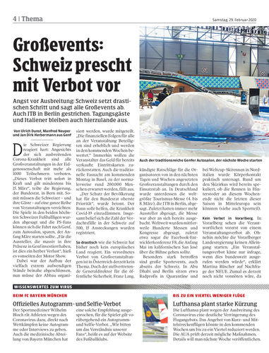 Angst vor Ausbreitung: Schweiz setzt drastischen Schritt und sagt alle Großevents ab. Auch ITB in Berlin gestrichen. Tagungsgäste und Italiener bleiben auch hierzulande aus.
