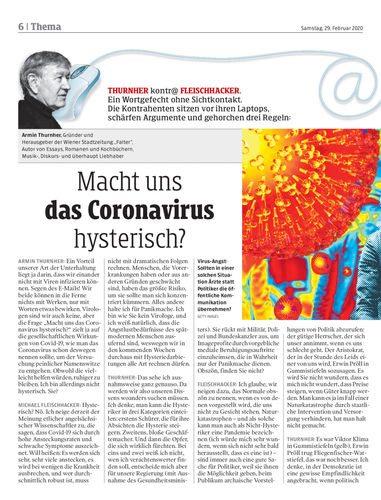 THURNHER kontr@ FLEISCHHACKER. Ein Wortgefecht ohne Sichtkontakt. Die Kontrahenten sitzen vor ihren Laptops, schärfen Argumente und gehorchen drei Regeln: