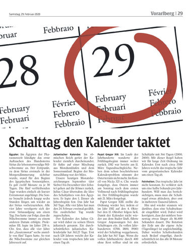 Dieser Februar hat 29 Tage. Astronomisch wäre das nicht erforderlich. Die Kunst der Kalendermacher besteht darin, dass der astronomische Frühling immer zur selben Zeit beginnt.