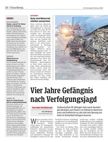 Vorbestrafter 39-Jähriger fuhr nach Ansicht des Richters auf Flucht vor Polizei in Hard mit Auto auf Polizistin zu, die sich mit Sprung zur Seite in Sicherheit bringen musste.