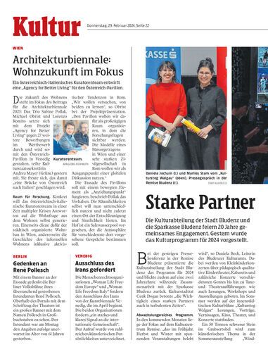 Die Kulturabteilung der Stadt Bludenz und die Sparkasse Bludenz feiern 20 Jahre gemeinsames Engagement. Gestern wurde das Kulturprogramm für 2024 vorgestellt.