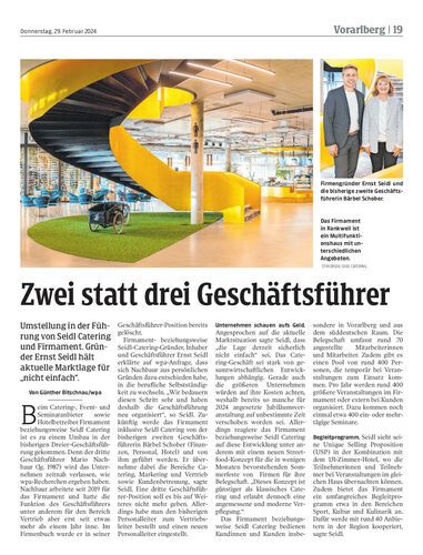 Umstellung in der Führung von Seidl Catering und Firmament. Gründer Ernst Seidl hält aktuelle Marktlage für „nicht einfach“.