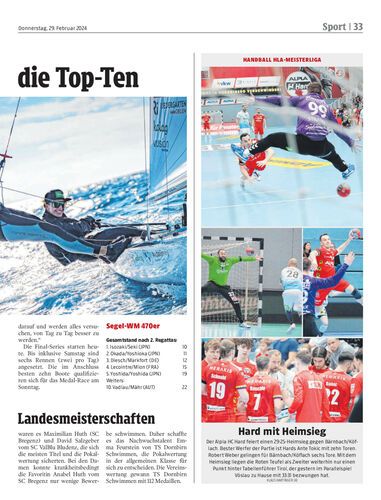 Der Bregenzer Lukas Mähr und seine Steuerfrau Lara Vadlau haben sich bei der Weltmeisterschaft in der olympischen 470er-Klasse vor Palma de Mallorca (ESP) souverän für die Goldflotte qualifiziert.