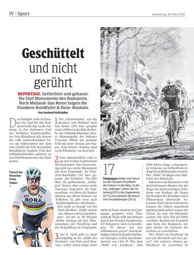 Reportage. Gefürchtet und gehasst. Die fünf Monumente des Radsports. Nach Mailand–San Remo folgen die Flandern-Rundfahrt & Paris–Roubaix. Von Gerhard Hofstädter