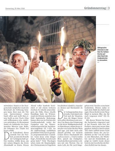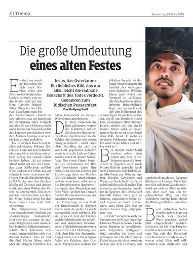 GRÜNDONNERSTAG. Jesus, das Osterlamm. Ein liebliches Bild, das nur allzu leicht die radikale Botschaft des Todes verdeckt. Gedanken zum jüdischen Pessachfest. Von Wolfgang Sotill
