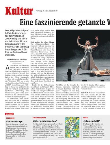 Das „Gilgamesch-Epos“ bildet die Grundlage für die Produktion „Outwitting the Devil“ der britischen Akram Khan Company. Das Stück war am Samstag beim Bregenzer Frühling im Festspielhaus zu sehen.
