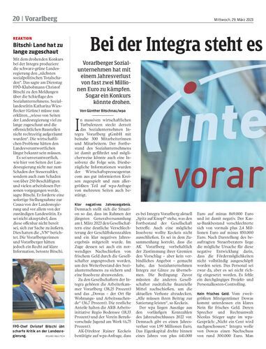 Vorarlberger Sozialunternehmen hat mit einem Jahresverlust von fast zwei Millionen Euro zu kämpfen. Sogar ein Konkurs könnte drohen.