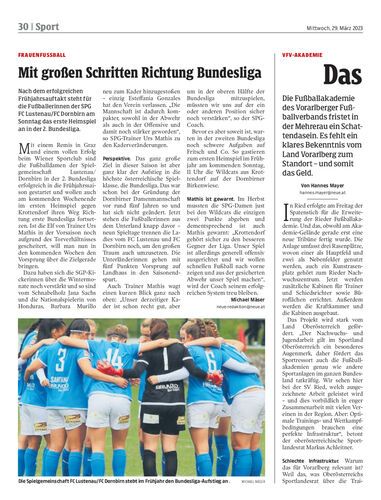 Nach dem erfolgreichen Frühjahrsauftakt steht für die Fußballerinnen der SPG FC Lustenau/FC Dornbirn am Sonntag das erste Heimspiel an in der 2. Bundesliga.
