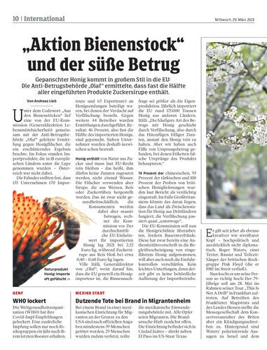 Gepanschter Honig kommt in großem Stil in die EU: Die Anti-Betrugsbehörde „Olaf“ ermittelte, dass fast die Hälfte aller eingeführten Produkte Zuckersirupe enthält.