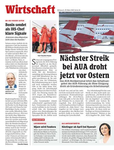 Das AUA-Bordpersonal lehnt das Gehaltsangebot der AUA-Führung ab. Ohne Einigung droht ab Gründonnerstag ein Arbeitskampf.