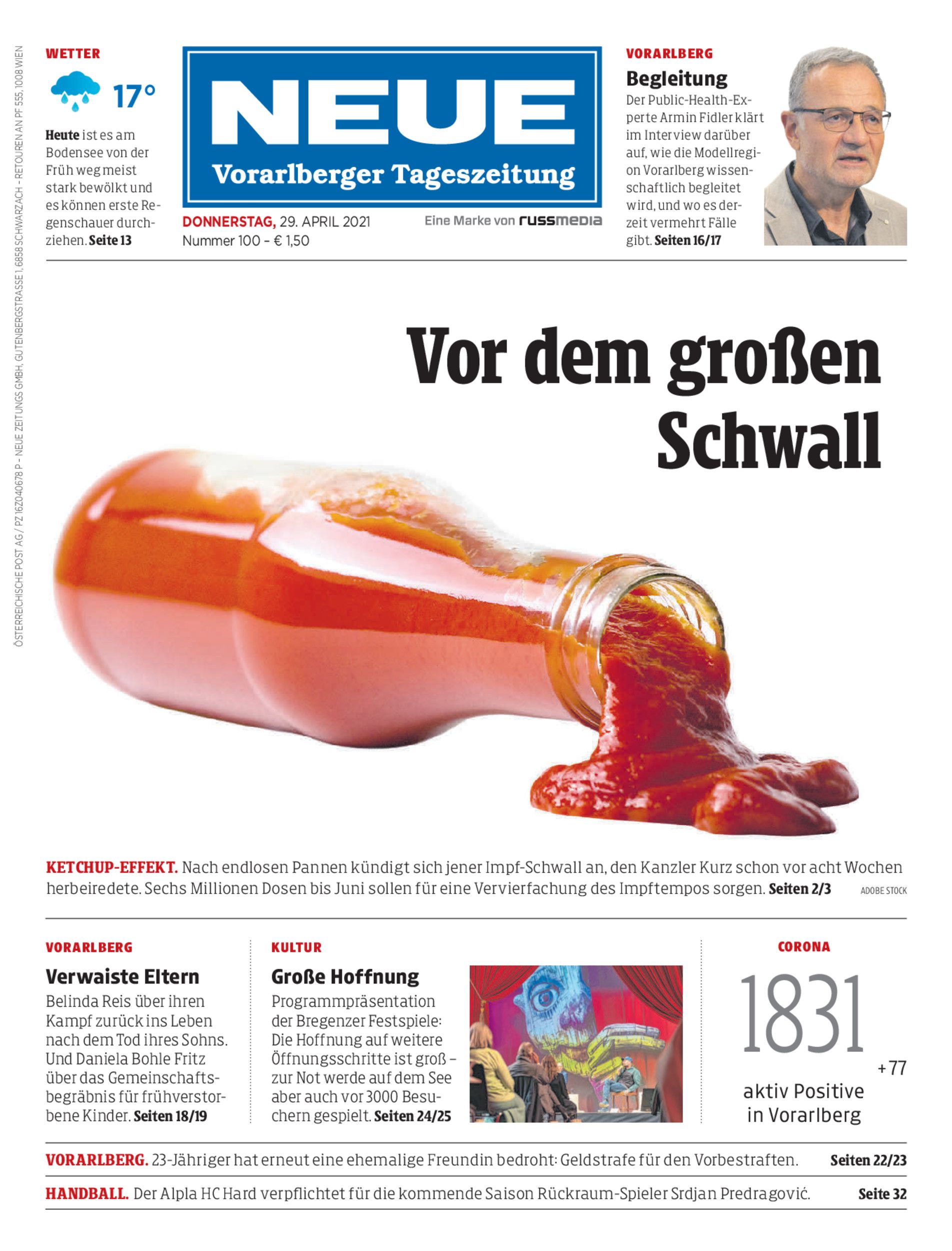 Ketchup-Effekt. Nach endlosen Pannen kündigt sich jener Impf-Schwall an, den Kanzler Kurz schon vor acht Wochen herbeiredete. Sechs Millionen Dosen bis Juni sollen für eine Vervierfachung des Impftempos sorgen. Seiten 2/3 Adobe stock