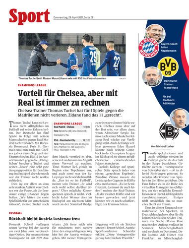 Chelsea-Trainer Thomas Tuchel hat fünf Spiele gegen die Madrilenen nicht verloren. Zidane fand das 1:1 „gerecht“.