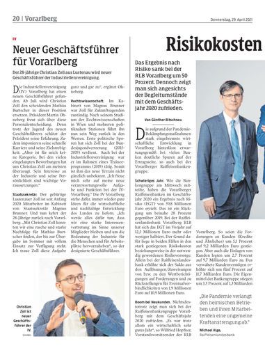 Das Ergebnis nach Risiko sank bei der RLB Vorarlberg um 50 Prozent. Dennoch zeigt man sich angesichts der Begleitumstände mit dem Geschäftsjahr 2020 zufrieden.