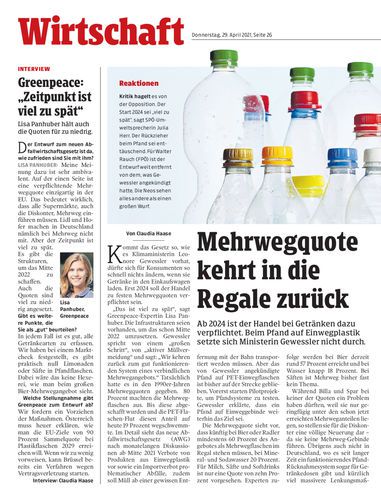 Ab 2024 ist der Handel bei Getränken dazu verpflichtet. Beim Pfand auf Einwegplastik setzte sich Ministerin Gewessler nicht durch.