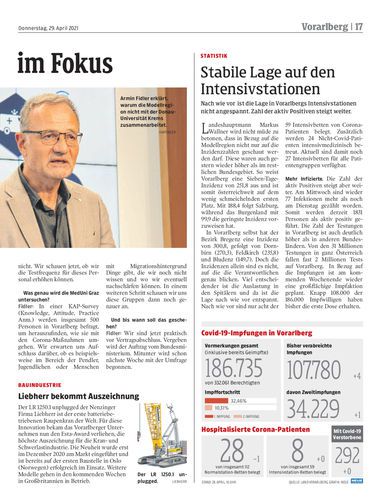 Nach wie vor ist die Lage in Vorarlbergs Intensivstationen nicht angespannt. Zahl der aktiv Positiven steigt weiter.
