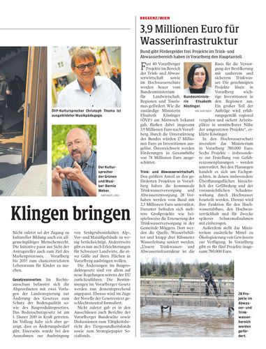 Bund gibt Fördergelder frei. Projekte im Trink- und Abwasserbereich haben in Vorarlberg den Hauptanteil.