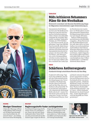 Österreich vereinbart mit Bosnien Rückführung illegaler Migranten, Innenminister sagte Unterstützung zu.