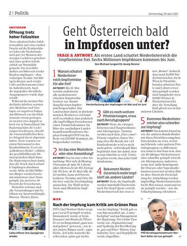 Frage & Antwort. Als erstes Land schaltet Niederösterreich die Impftermine frei. Sechs Millionen Impfdosen kommen bis Juni. Von Michael Jungwirth, Georg Renner