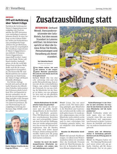 Interview. Gerhard Wendl, Vorstandsvorsitzender der Jufa-Hotels, hat den neuen Standort in Laterns eröffnet. Im Interview spricht er über die Corona-Krise für Hotels, Personalsorgen und Vorarlberg als Hotelstandort.