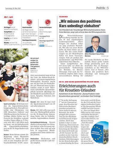 Der Präsident der Vorarlberger Wirtschaftskammer, Hans Peter Metzler, zeigt sich erfreut über die Öffnungsschritte.