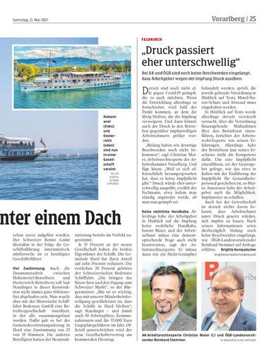 Bei AK und ÖGB sind noch keine Beschwerden eingelangt, dass Arbeitgeber wegen der Impfung Druck ausüben.