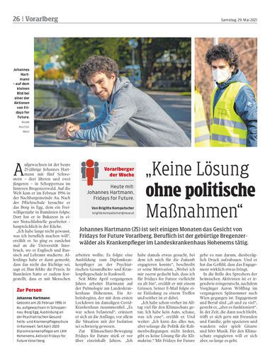 Johannes Hartmann (25) ist seit einigen Monaten das Gesicht von Fridays for Future Vorarlberg. Beruflich ist der gebürtige Bregenzerwälder als Krankenpfleger im Landeskrankenhaus Hohenems tätig.