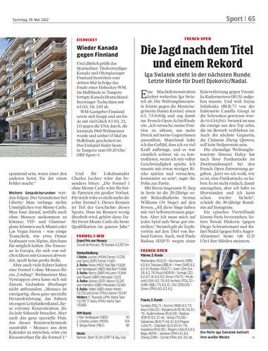 Iga Swiatek steht in der nächsten Runde. Letzte Hürde für Duell Djokovic/Nadal.