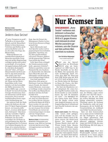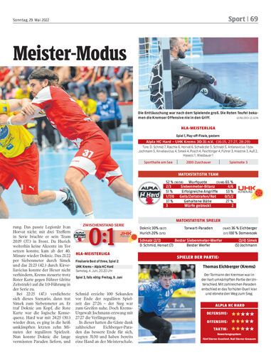 Spielbericht. „Rote Teufel“ verlieren mit defensiv schwacher Leistung erstes Finale 30:31 n.V. gegen Krems und müssen in einer Woche auswärts gewinnen, um die Chance auf den achten Meistertitel zu wahren.