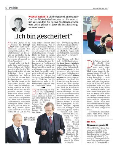 wiener parkett. Christoph Leitl, ehemaliger Chef der Wirtschaftskammer, hat bis zuletzt um Verständnis für Putins Positionen geworben. Umso größer ist jetzt die Enttäuschung. Von Michael Jungwirth