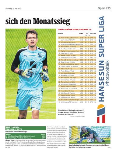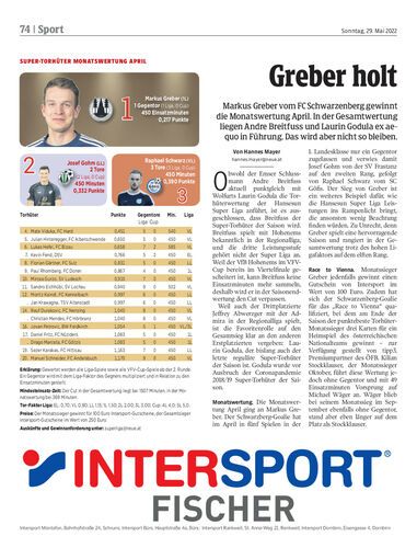 Markus Greber vom FC Schwarzenberg gewinnt die Monatswertung April. In der Gesamtwertung liegen Andre Breitfuss und Laurin Godula ex aequo in Führung. Das wird aber nicht so bleiben.