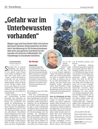 Wegen Lage und Geschichte fühlt sich Schweden durch Ukraine-Krieg bedrohter als Österreich. Bevölkerung ist für Krisensituationen aber recht gut gerüstet und denkt im Alltag eher an nächstes Fußballspiel. Ein Vorarlberger in Stockholm berichtet.