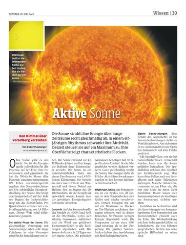 Die Sonne strahlt ihre Energie über lange Zeiträume recht gleichmäßig ab. In einem elfjährigen Rhythmus schwankt ihre Aktivität. Derzeit steuert sie auf ein Maximum zu. Ihre Oberfläche zeigt charakteristische Flecken.