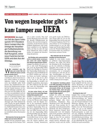 Interview. Im zweiten Teil des Sport-Talks spricht VFV-Präsident Horst Lumper über die Erfolge der Vorarlberger Fußballakademie, die Bestellung von Ralf Rangnick, seine neue Funktion bei der UEFA und dem Aus der Eliteliga.