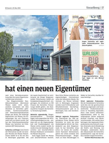 Die Handelskette Sutterlüty übernimmt den Fleischwarenhersteller Walser. Die Belegschaft wurde am Dienstag darüber informiert.