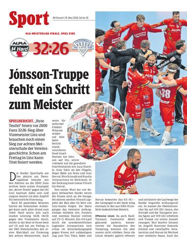Spielbericht. „Rote Teufel“ feiern vor 2000 Fans 32:26-Sieg über Vizemeister Linz und brauchen noch einen Sieg zur achten Meisterschale der Vereinsgeschichte. Schon am Freitag in Linz kann Titel fixiert werden.