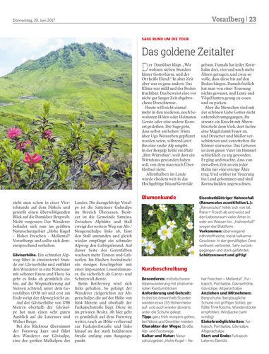 Die Geschichtenerzählerin Hertha Glück begibt sich auf eine Alpenrunde ab dem Furkajoch über die Portlaalpe und Gäviserhöhe zur Gävisalpe, über die Altgerachalpe wieder zurück.