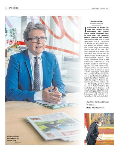 Interview. Bildungsminister Martin Polaschek (ÖVP) spricht im NEUE-Interview über die Kritik an der Lehrerausbildung, pragmatische Ansätze in der Praxis und das Engagement des Bundes im Vorarlberger Hochschulbereich.