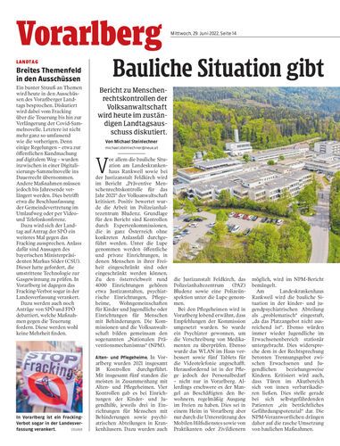 Bericht zu Menschenrechtskontrollen der Volksanwaltschaft wird heute im zuständigen Landtagsausschuss diskutiert.
