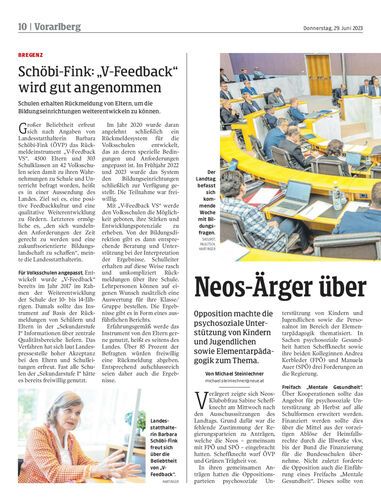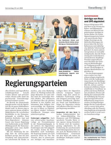 Opposition machte die psychosoziale Unterstützung von Kindern und Jugendlichen sowie Elementarpädagogik zum Thema.