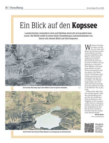 Landschaften verändern sich und bleiben doch oft erstaunlich konstant. Die NEUE stellt in einer Serie Vorarlberg in Luftaufnahmen vor, heute mit einem Blick auf den Kopssee.