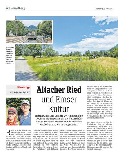 Hertha Glück und Gerhard Vylet nutzen eine trockene Wetterphase, um die Naturschönheiten zwischen Altach und Hohenems zu entdecken und Kultur zu genießen.