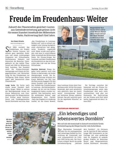 Zukunft des Theaterzeltes gesichert: Lustenaus Gemeindevertretung gab grünes Licht für neuen Standort innerhalb des Millennium Parks. Pachtvertrag läuft fünf Jahre.