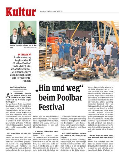 Interview. Am Donnerstag beginnt das 31. Poolbar Festival in Feldkirch. Geschäftsführer Herwig Bauer spricht über die Highlights und Herausforderungen.