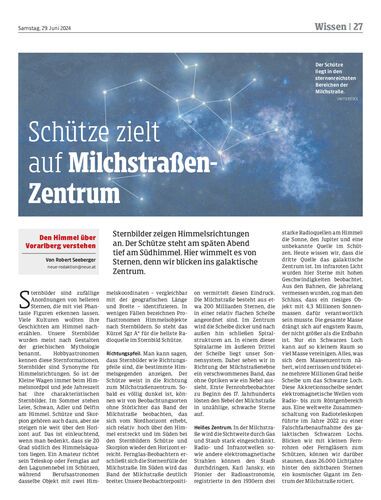 Sternbilder zeigen Himmelsrichtungen an. Der Schütze steht am späten Abend tief am Südhimmel. Hier wimmelt es von Sternen, denn wir blicken ins galaktische Zentrum.